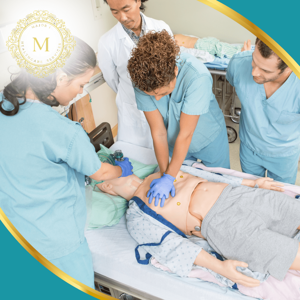Our 100% classroom training ensures that students are with an instructor throughout their learning experience. This option is ideal for those who learn best in a classroom environment alongside other students. Our courses are taught by instructors who cover both the cognitive portion of the course and hands-on skills practice and testing. At Major1 Healthcare, we offer CPR/First Aid/ACLS & PALS classes every day by appointment.